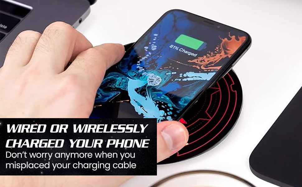 Unclutter your space and simplify charging with the DUNE Wireless Charging Pad. FameTek’s design for an efficient and high-speed charging at 2.4A or 3A for Wired Connections or 10W for Wireless Charging that work for various tablets and phones like most Androids and iPhone’s 8 and up!