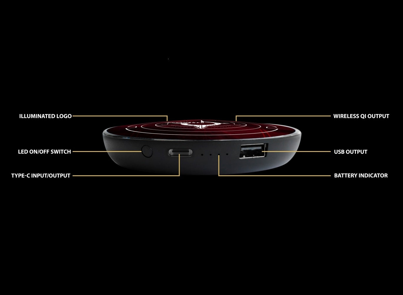 You always need more power! Stay charged with your own Dune Qi Wireless charging pad with Built-In Battery & Illuminated House Crest!