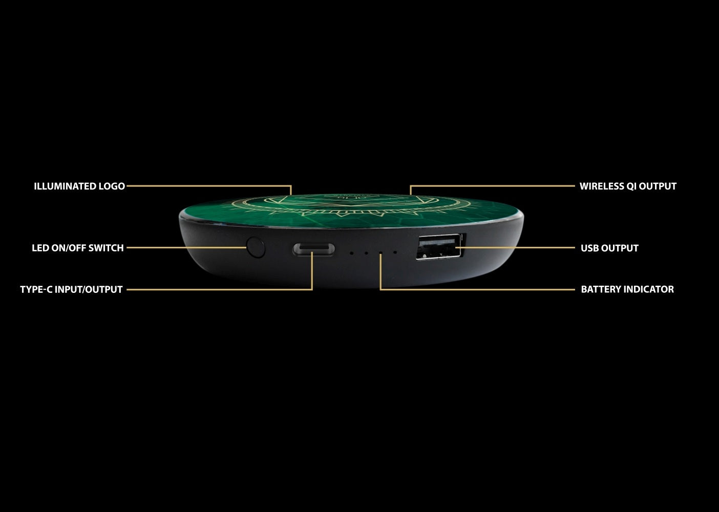 You always need more power! Stay charged with your own Dune Qi Wireless charging pad with Built-In Battery and illuminated House Crest!